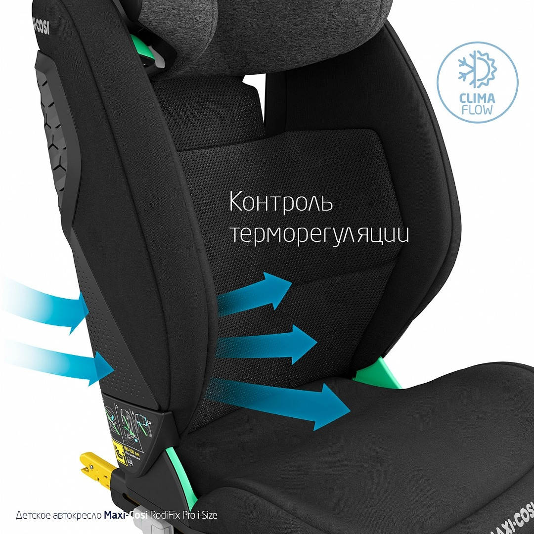 Maxi-Cosi RodiFix Pro i-Size — автокресло, которое обеспечивает максимальную безопасность и комфорт для детей от 3,5 до 12 лет. Модель оснащена современными технологиями защиты при боковых ударах и системой терморегуляции CLIMAFLOW, что создает оптимальные условия для путешествий в любое время года. Благодаря регулируемым по высоте и ширине элементам кресло легко адаптируется к росту ребенка.