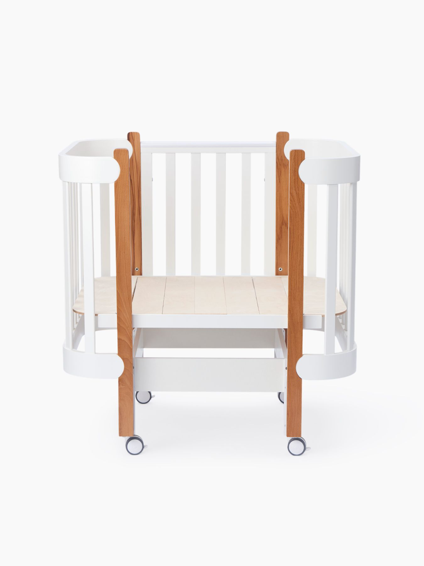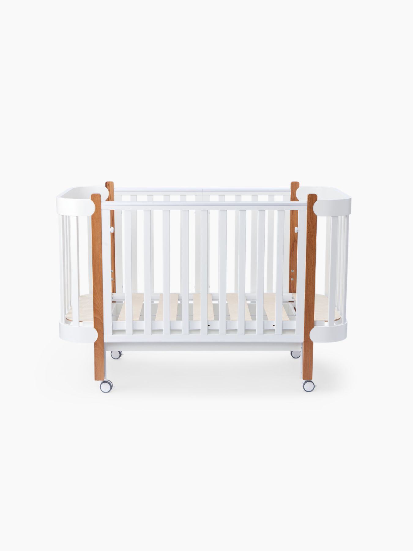 Позволяет использовать кроватку как приставную, что удобно для совместного сна и облегчает уход за новорождённым ночью.