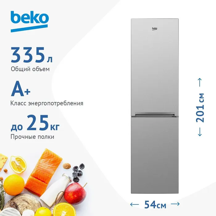 Beko CSKDN6335MC0S — Холодильник BEKO CSKDN6335MC0S выполнен в серебристом цвете. При его создании были продуманы все элементы. Вам понравится приятный дизайн, можно вписать технику в интерьер любого помещения. Холодильник может сохранять холод автономно в течение 13 часов. Непродолжительные отключения подачи электроэнергии не станут причиной размораживания. В холодильной камере присутствует специальная подставка для размещения яиц. BEKO CSKDN6335MC0S имеет функцию суперзаморозки. Можно временно понизить температуру при закладке больших объемов продуктов. Класс энергопотребления у модели - A+. Холодильник экономичный и расходует не так много энергии при работе. Габариты корпуса - 54x60x201 см. Модель довольно компактная, не придется выделять много места для ее установки в помещении. Количество камер - 2. Морозильная обладает объемом 90 литров, холодильная - 204. Вы сможете поместить внутрь множество продуктов. Полки в холодильнике стеклянные. Они прочные и надежные, за ними легко ухаживать. Присутствует антибактериальное покрытие. Оно необходимо для предотвращения размножения различных микроорганизмов, также увеличивается срок хранения продуктов.
