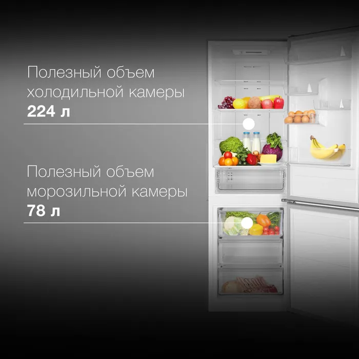 310 л позволяет хранить большое количество продуктов, что удобно для семейного использования.