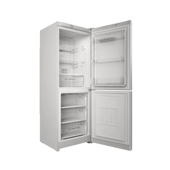 Indesit ITS 4160 W — Холодильник Indesit ITS 4160 с возможностью управления заморозкой позволит практически мгновенно охладить большой объем продуктов. Полки для размещения еды в холодильной камере выдерживают до 100 кг. Для удобного хранения фруктов и овощей есть отдельные ящики. В нижней части расположен мощный морозильник вместимостью 78 л. Система No Frost во всех отделениях предотвращает появление наледи и инея на стенках, за счет чего нет необходимости размораживать аппарат вручную. При открытии металлических дверей автоматически включается яркая LED-подсветка. При необходимости их можно перевесить под левую руку. Микроклимат сохранится до 14 ч, если неожиданно отключится электропитание.