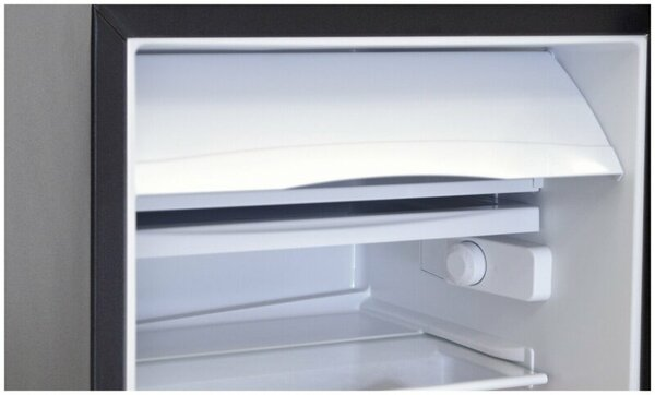 NORDFROST NR 402 B — Однодверный холодильник Nordfrost NR 402, черный, оборудован отделением для скоропортящихся продуктов. Общий объем холодильника составляет 60 л, из которых 49 л приходится на холодильную камеру, 11 л — на морозильный отсек. Модель относится к высшему классу энергоэффективности — А+. Температурный режим холодильной камеры можно установить в диапазоне от 0°C до +8°C. Внутри одна полка из закаленного стекла. Еще две пластиковые полки располагаются на дверце. Температурный режим отделения для скоропортящихся продуктов варьируется от -6°C до 0°C. Система оттаивания холодильника ручная. В качестве хладагента используется R600a (изобутан), что способствует экологически чистой работе устройства. Суточный расход электроэнергии — 0,301 кВт*ч. Модель характеризуется уровнем шума в 39 дБ. Дверцу можно перенавешивать.