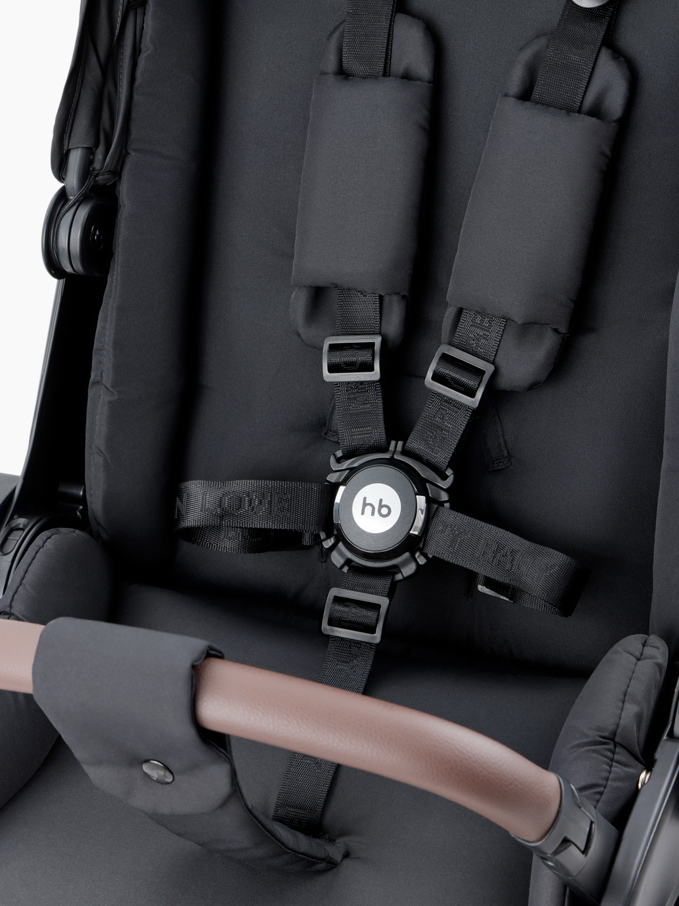 Пятиточечные ремни с мягкими накладками и магнитной пряжкой, съёмный бампер делают поездки безопаснее для ребёнка.