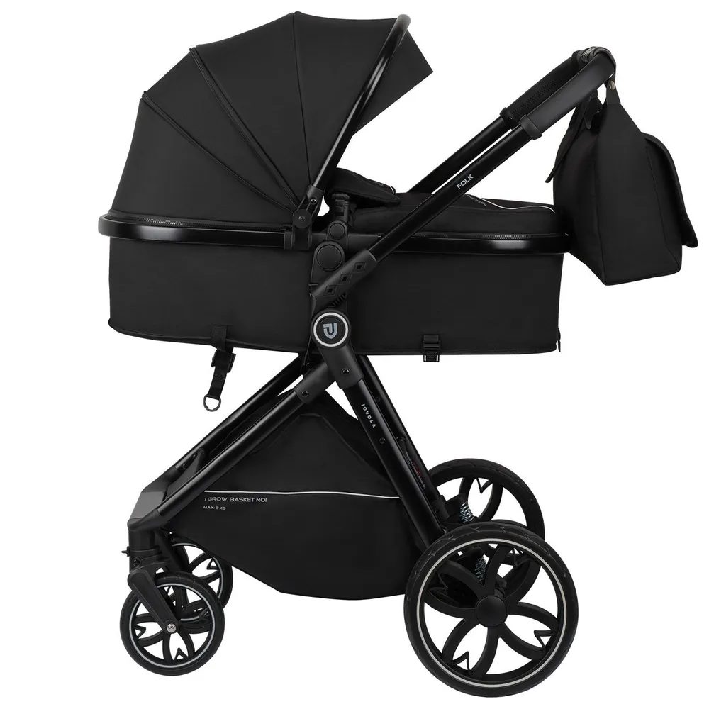 Jovola Folk — практичная, функциональная коляска трансформер для новорожденных предназначена для прогулок и перевозки детей с рождения до трех лет.Трансформеры не занимают много места и намного экономичнее модульных моделей. Два ее блока заменяют собой три блока универсальной детской коляски 3 в 1.Первый блок включает в себя коляску-люльку и прогулочный блок для малышей с 6 месяцев. Второй блок-это автолюлька группы 0-13 кг.
