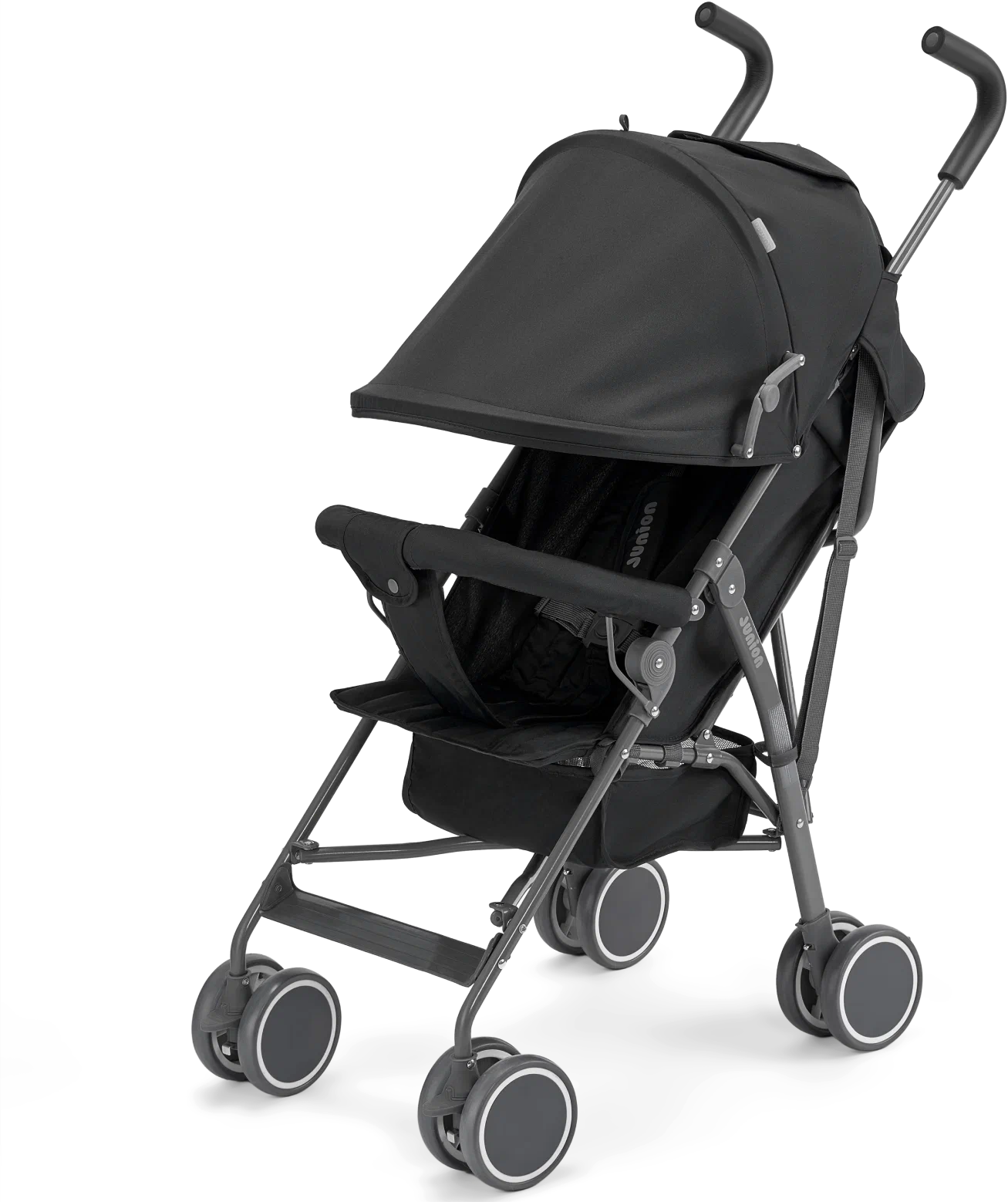 Junion Bebocabra — компактная коляска-трость, практичная для родителей и комфортная для малыша. Модель весит всего 5,5 кг и складывается одним движением.Малыш надежно фиксируется в коляске пятиточечными ремнями, а для дополнительной безопасности и комфорта предусмотрены разделитель для ног и съемный бампер.Колёса с наполнением EVA невозможно проколоть и не нужно подкачивать. Для максимальной манёвренности передние колёса поворачиваются на 360 градусов. Также их можно установить в одном положении, чтобы коляска ехала только прямо. Благодаря ножному стопперу коляска надёжно фиксируется на месте во время остановки.Капюшон из водоотталкивающей ткани защитит малыша от дождя и ветра.В корзине поместятся любимые игрушки, а в задний карман на молнии можно положить ключи и документы.