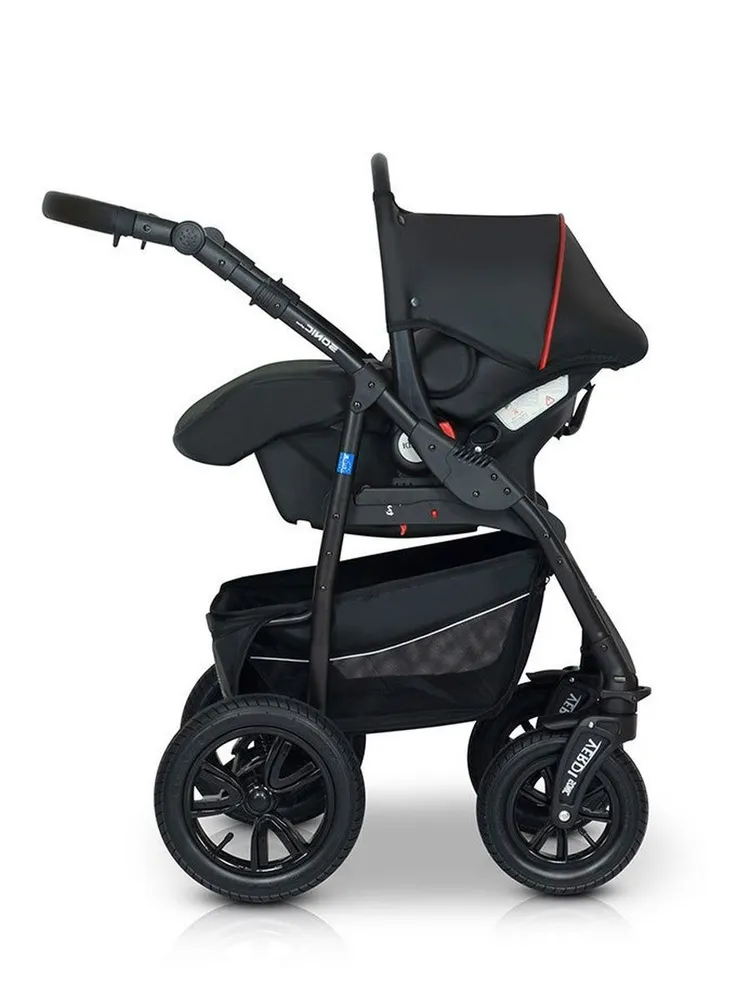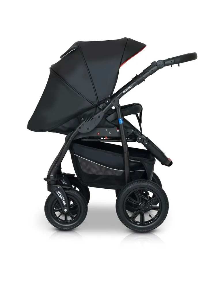 Verdi Sonic Plus 3 в 1 — многофункциональная коляска с возможностью установки автокресла 0+. Реверсивная установка люльки, прогулочной коляски и автокресла. Регулируемая высота ручки. Ручка обшита эко-кожей. Корзинка для покупок, закрываемая на застежку-молнию. Конструкция коляски выполнена из алюминия. Большие накачиваемые, подшипниковые колеса. Передние колеса с возможностью блокировки для движения в прямом направлении. Легкий механизм складывания и раскладывания коляски.
