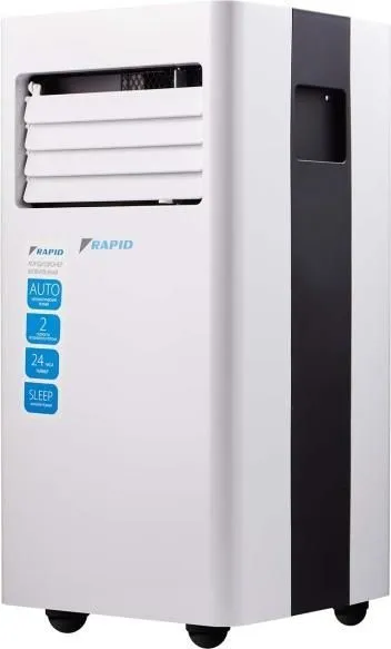 Rapid RAC-07 CE/N6 — компактный мобильный кондиционер может работать в режиме охлаждения, вентиляции и осушения воздуха, он будет постоянно поддерживать комфортный микроклимат. Небольшой корпус оснащен колесиками для перемещения между комнатами, для запуска устройства достаточно просто подключить его к сети. Предусмотрен авторестарт: после аварийного отключения электроэнергии прибор запускается самостоятельно с теми же настройками.