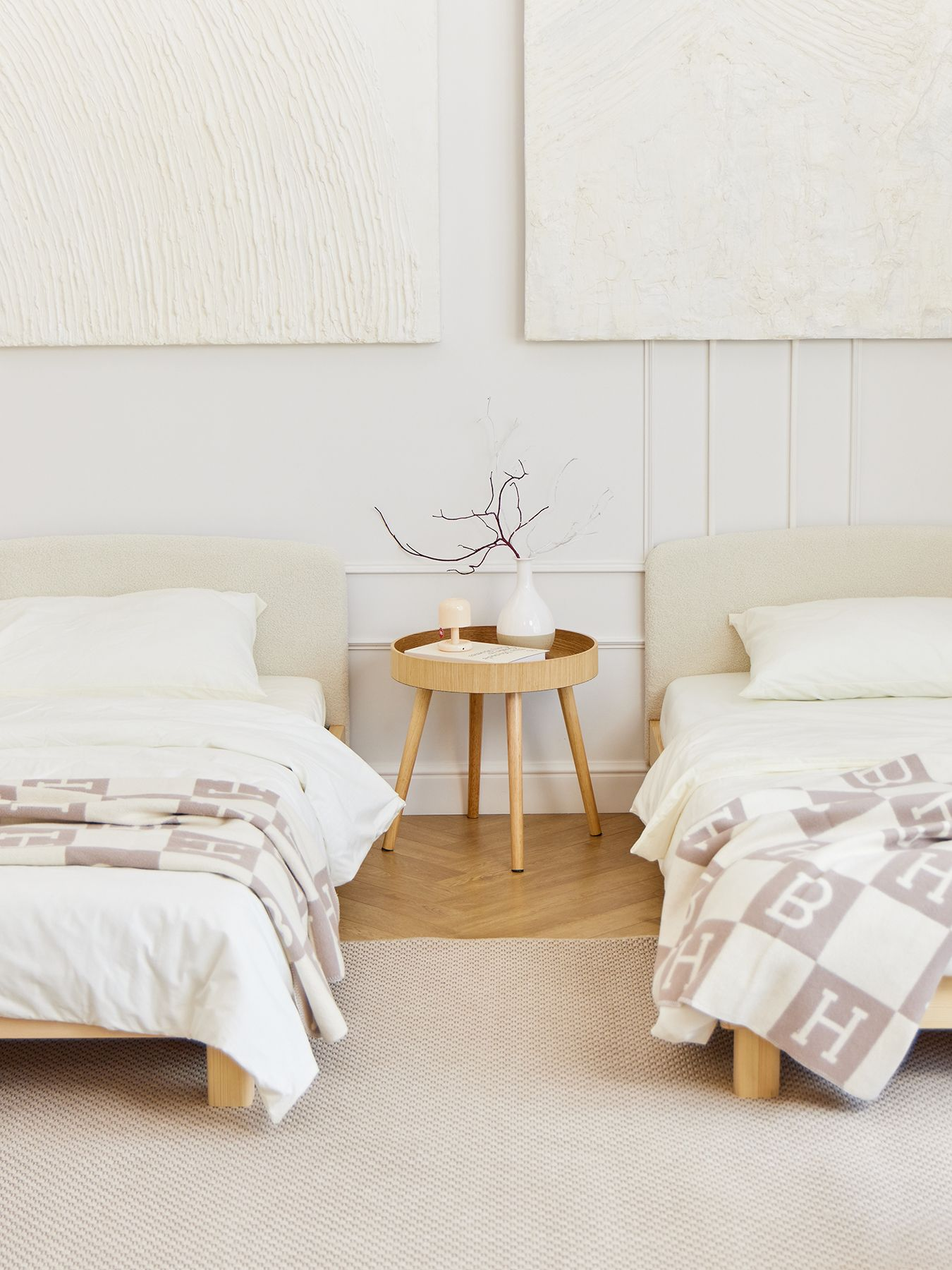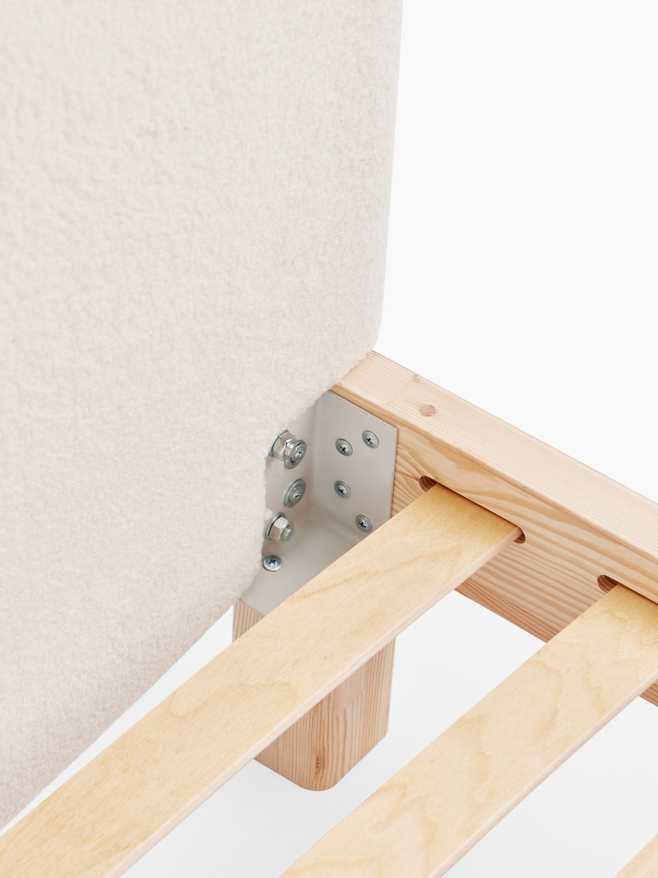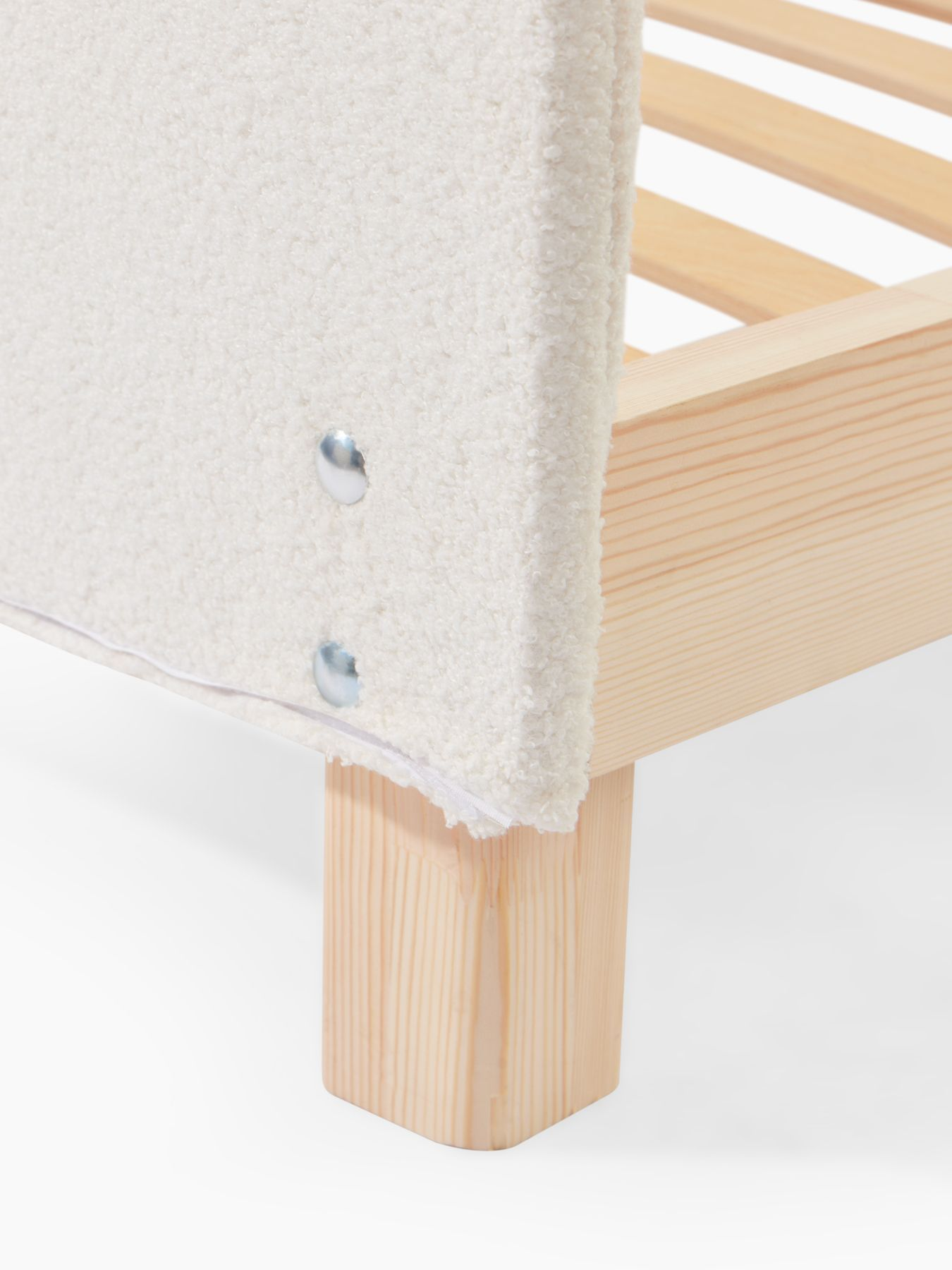Букле из полиэстера придает кровати современный и стильный вид, а также облегчает уход за мебелью.