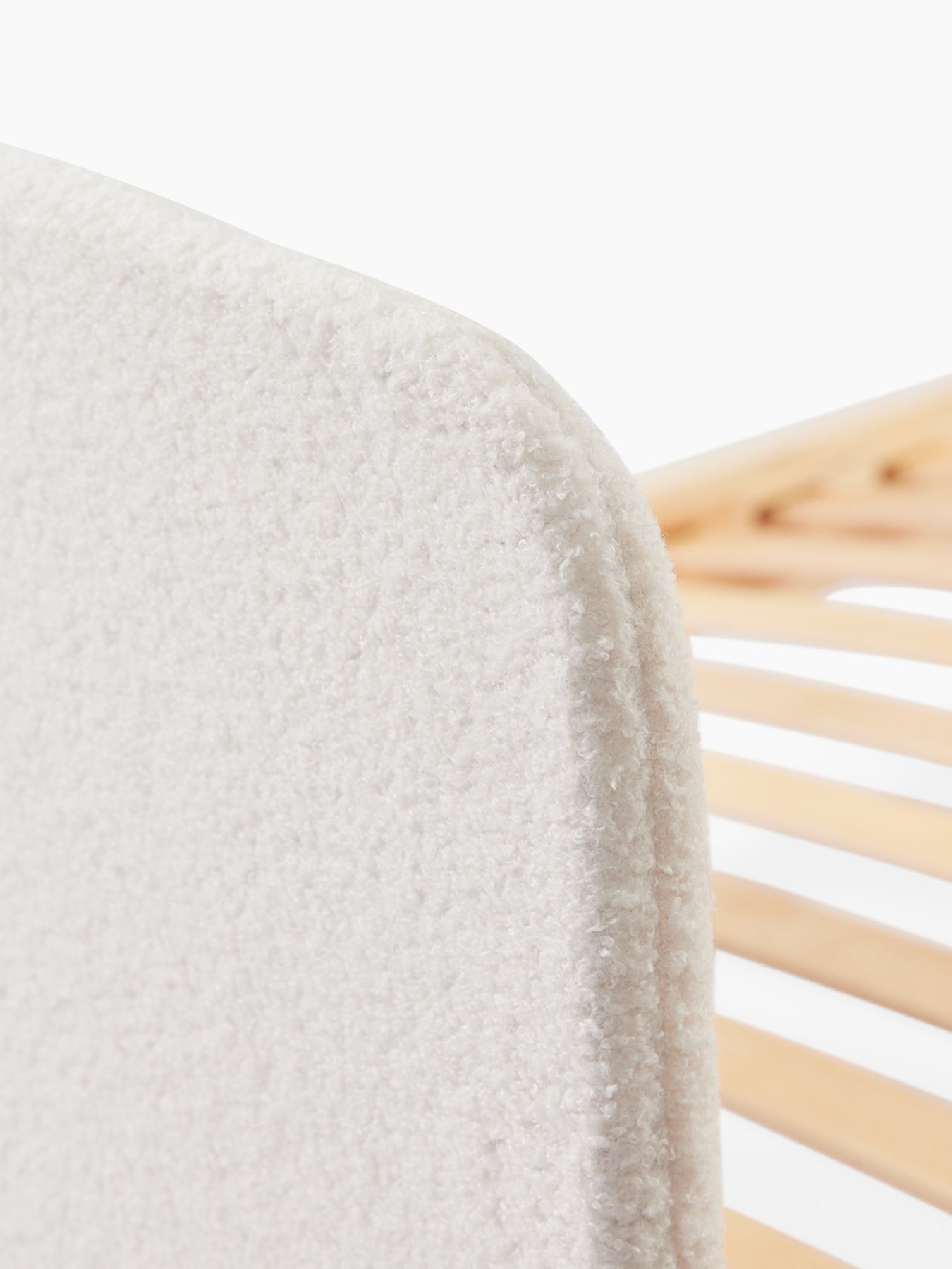 Happy Baby SOMNA — это уютное спальное место создано с заботой о самых маленьких членах семьи — натуральное дерево, мягкая обивка букле и надежная конструкция делают его идеальным выбором для современных детских комнат. Мягкое изголовье добавляет комфорта и безопасности, а стильный дизайн подчеркнет атмосферу уюта и спокойствия.