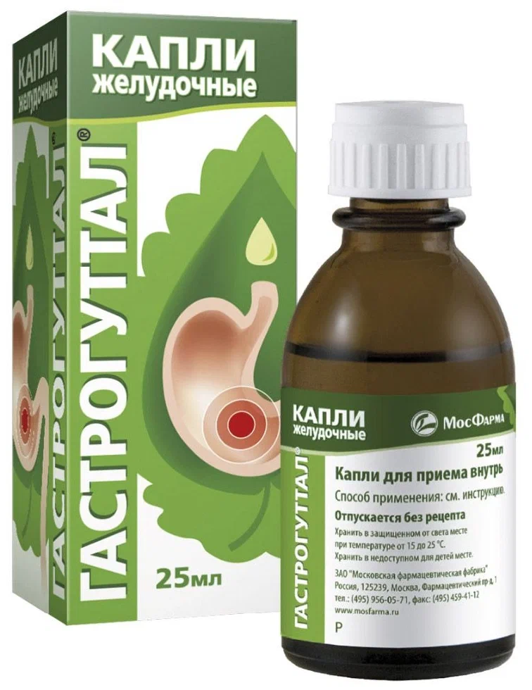 Гастрогуттал — это комбинированный препарат растительного происхождения. Он содержит в своем составе настойку валерианы, настойку полыни, настойку мяты перечной и настойку красавки. Гастрогуттал применяют в качестве спазмолитического средства при широком спектре заболеваний ЖКТ. К ним относятся: гипо- и анацидный гастрит, хронический колит, хронический холецистит, дискинезия желчевыводящих путей. Препарат противопоказан при гастрите с повышенной кислотностью глаукоме, язвенной болезни в период обострения, а также людям, младше 18 лет.