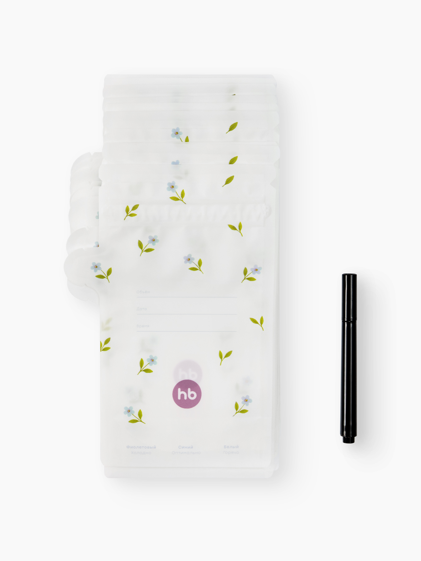 Маркер в комплекте облегчает маркировку даты и времени сцеживания, что помогает соблюдать порядок хранения.