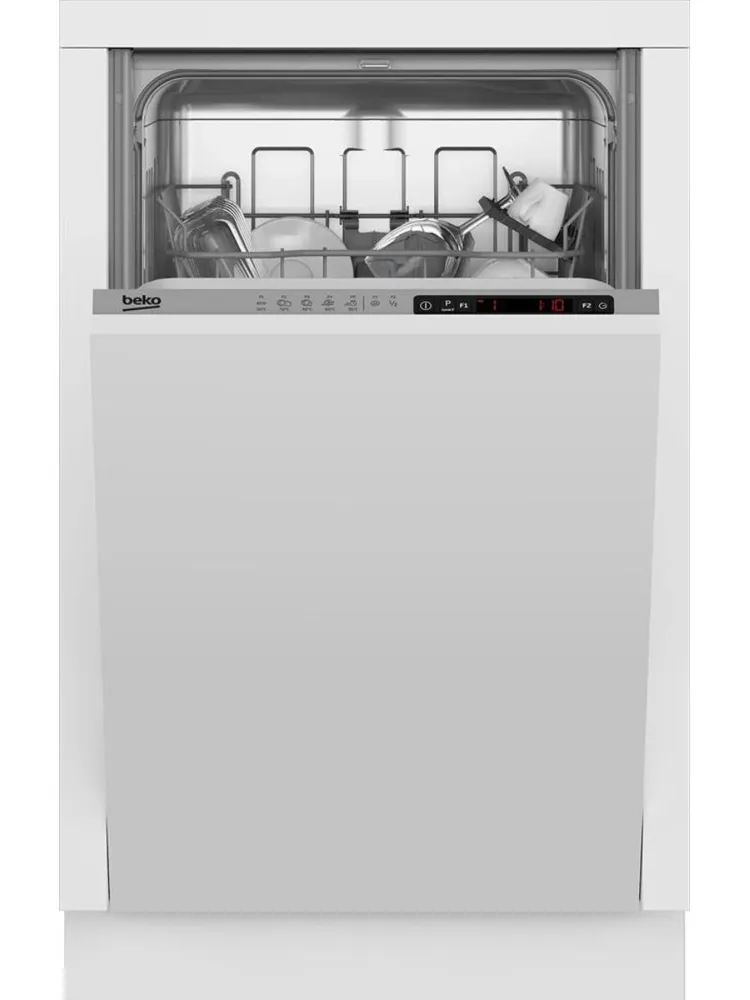 Beko BDIS15060 — встраиваемая посудомоечная машина на 10 комплектов оснащена 2 корзинами, 2 полками для чашек и отдельным лотком для столовых приборов. Конструкция допускает подключение к воде с температурой до 30 °C, использование средств «3 в 1». Яркие индикаторы напоминают о необходимости добавления в специальные отсеки соли и ополаскивателя.