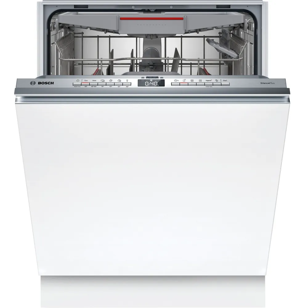 Bosch SMV4HMX65Q — встраиваемая посудомоечная машина 60 см на 13 комплектов посуды может работать в режиме энергосбережения, если выбрать неполную загрузку. За один цикл электроприбор потребляет до 9,5 л воды и до 0,92 кВт*ч электроэнергии. Электронными кнопками можно установить одну из шести программ функционирования, воспользоваться мини-программой на 29 минут, интенсивным вариантом действия, режимом усиленной гигиены, таймером отложить старт вплоть до 24 часов. Сенсор определяет чистоту воды. Доступно применение моющего средства «3 в 1». Для учета таблеток предусмотрен специальный счетчик. На светодиодном дисплее отображаются показатели работы. О завершении функционирования оповещает проекция лучом на пол. Уровень шума не превышает 44 дБ.