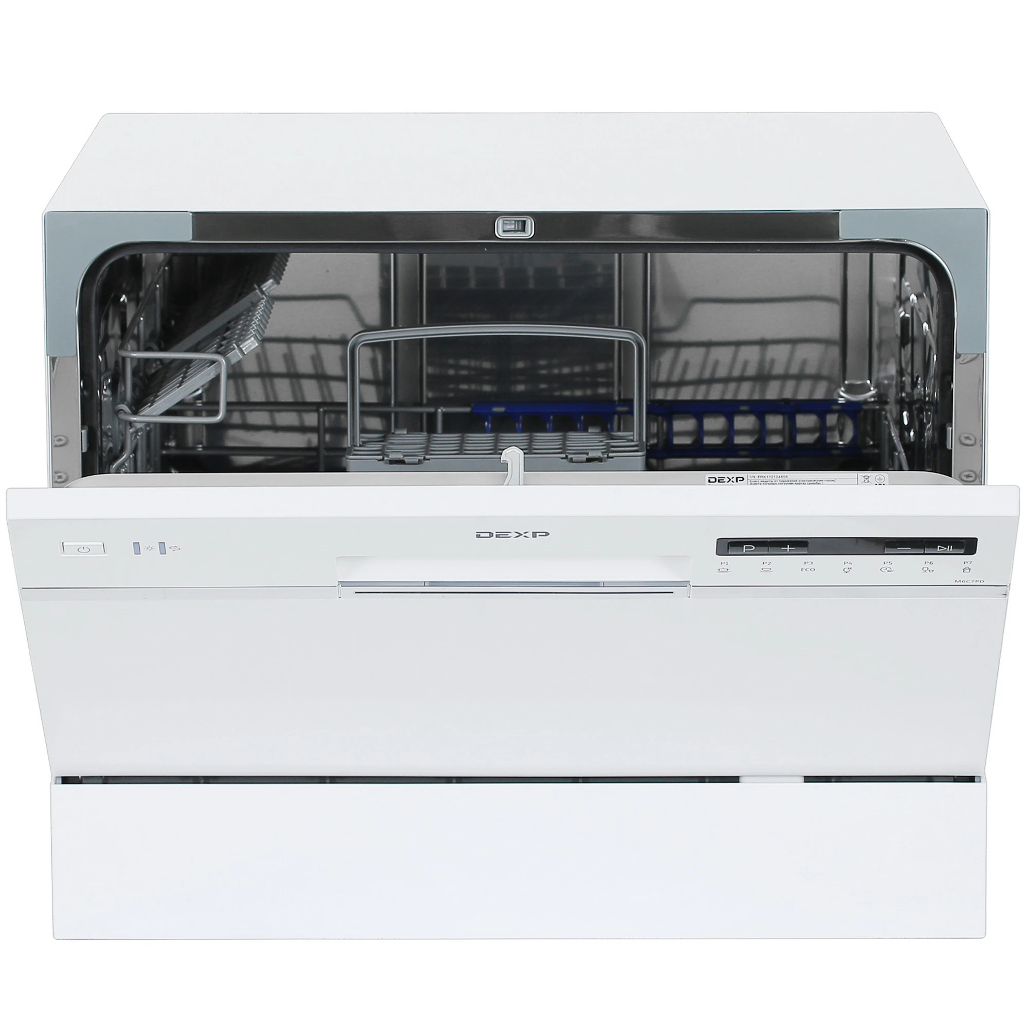 DEXP M6C7PD — посудомоечная машина рассчитана на 6 комплектов посуды. Поместить в такую машину большую сковороду или кастрюлю не получится, но избавить от рутины с тарелками и чашками ей удастся.