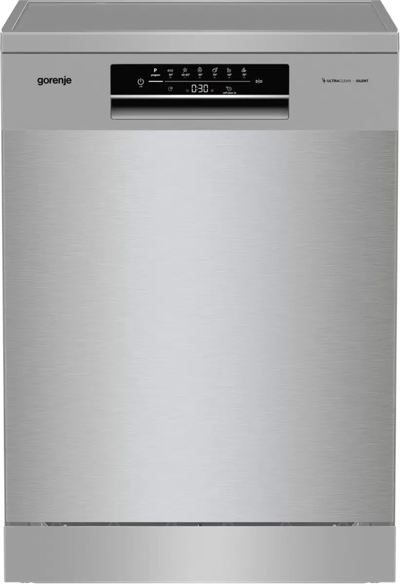 Gorenje GS643D90X оснащена 6 программами мойки и таймером отсрочки на 24 ч. Система AquaStop с полной защитой от протечек, насосами для откачки и блокировкой подачи воды позволяет оставлять устройство включенным в ваше отсутствие. Программа Auto определяет степень загрязнения, настраивает температуру и время цикла. Система автоочистки промывает фильтр и оповещает при обнаружении неполадок. Программа самоочистки упрощает уход за ПММ.