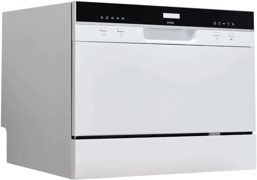 HYUNDAI DT205 — посудомоечная машина вмещает до 6 комплектов посуды. Для максимального эффекта мойки предусмотрено 6 встроенных режимов, включая режим для бережного мытья и специальный режим для сильнозагрязненной посуды.