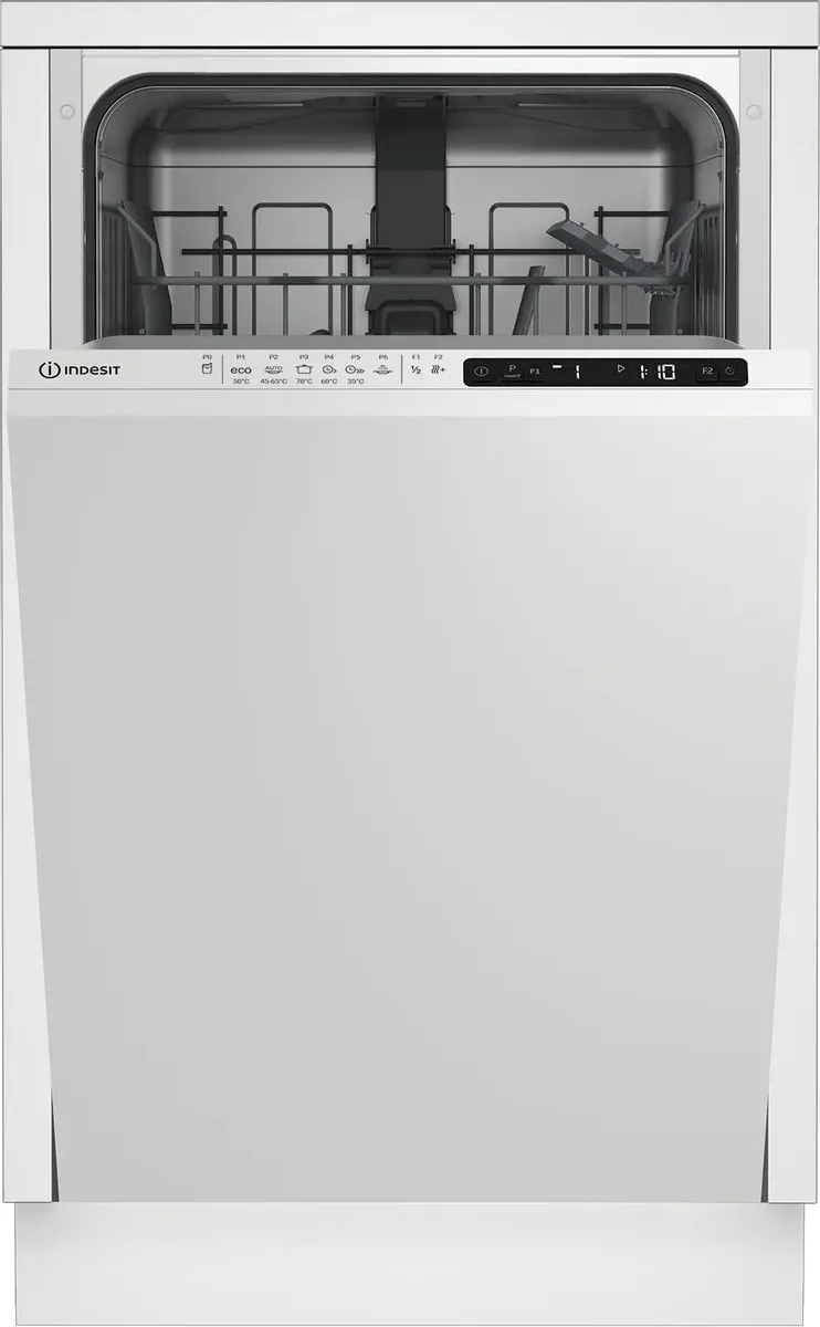 Indesit СМ DIS 1C69 — встраиваемая посудомоечная машина шириной 45 см вмещает в себя до десяти комплектов посуды, для различной степени загрязнений предусмотрены шесть программ мойки, в том числе быстрый и экономичный режимы. Можно менять высоту корзины для посуды, загружать половинное количество, устанавливать таймер запуска на 24 часа.