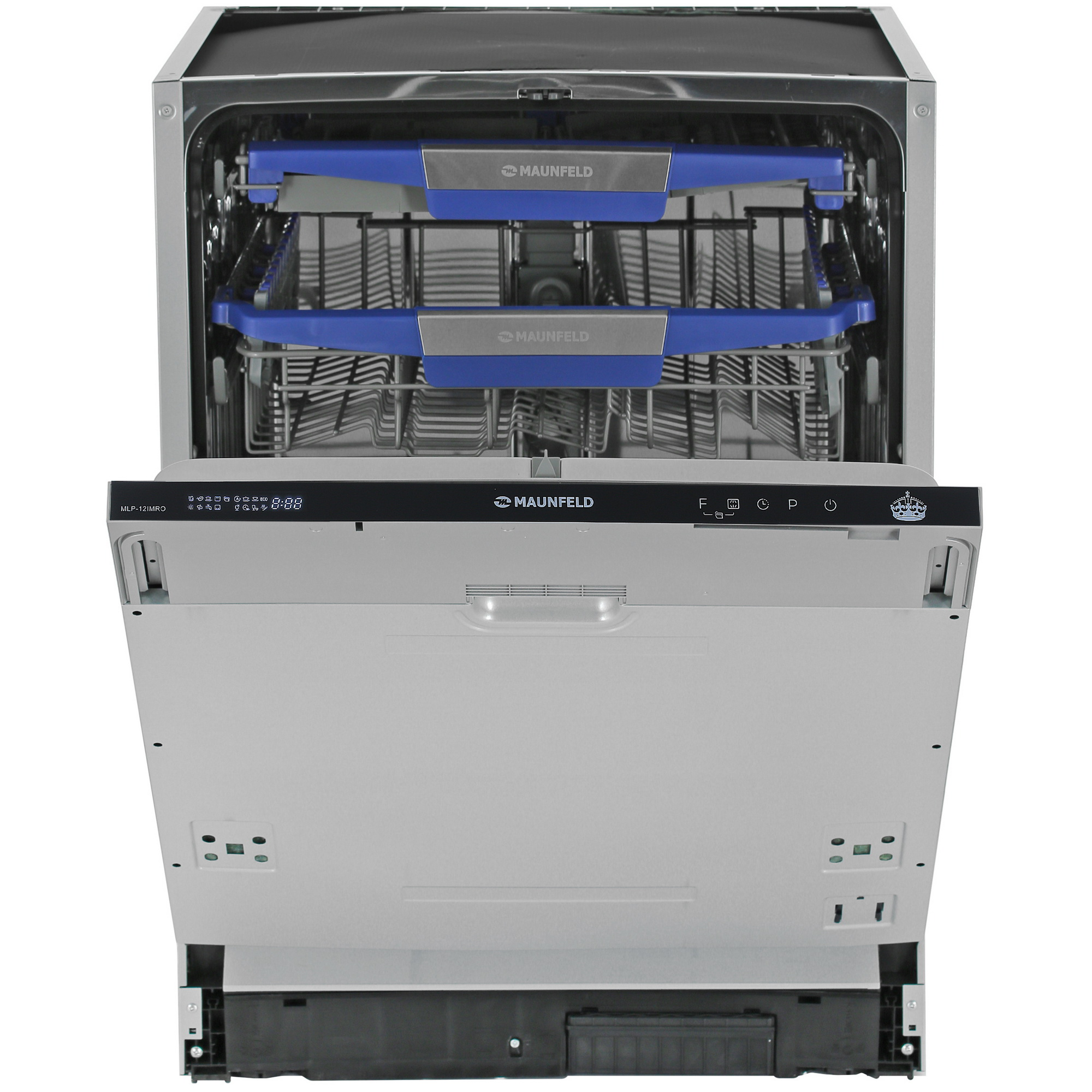 MAUNFELD MLP-12IMRO — встраиваемая посудомоечная машина шириной 60 см вмещает 14 комплектов посуды. Автооткрытие дверцы после мойки делает процесс сушки естественным, защищает от появления разводов на стеклянных бокалах. Разбрызгиватель над верхней корзиной улучшает качество мытья посуды даже при полной загрузке камеры.