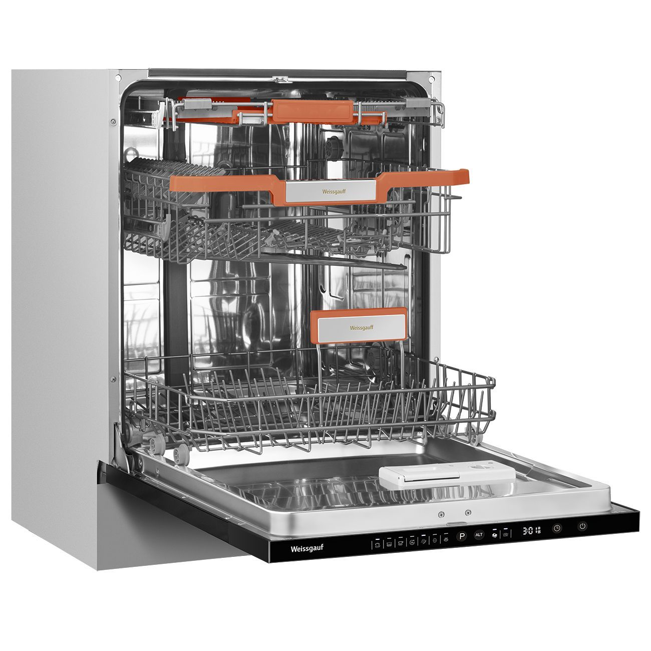 Weissgauff BDW 6036 D Infolight — полноразмерная встраиваемая и большая посудомоечная машина 60 см оснащена 3 корзинами, функцией "Луч на полу" и обладает вместимостью до 14 комплектов посуды, а также богатым набором из 6 программ, в том числе и автоматической программой Blitz Wash. Широкая посудомойка с трем корзинами позволяет разместить отдельно от остальной посуды в верхнем лотке сразу все ложки, вилки и ножи, обеспечивая при этом их наилучшее мытьё! До 14 комплектов посуды одновременно вы можете расположить в данные посудомоечные машины, благодаря современным продуманным и эргономичным корзинам, которыми Weissgauff оснастили эту модель! Функция "Луч на полу", позволяющая определить, завершила ли посудомойка свой цикл работы, не открывая при этом дверцу!