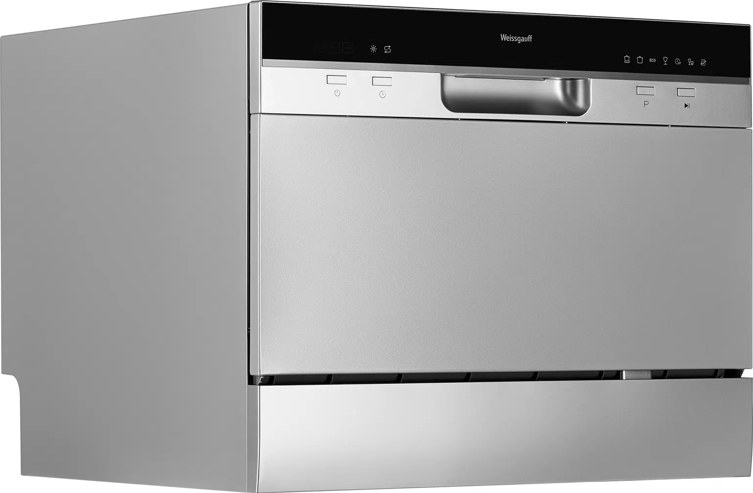 Weissgauff TDW 4017 DS — посудомоечная машина представлена в серебристом цвете. В ней можно разместить до 6 комплектов посуды, а благодаря небольшой высоте прибор может быть установлен на кухонной столешнице или тумбе. Рабочая камера изготовлена из нержавеющей стали, что призвано продлить срок службы и предотвратить негативное воздействие воды. Кроме того, для посудомоечной машины Weissgauff TDW 4017 DS можно установить задержку пуска до 24 часов. Модель использует 6.5 литров воды на цикл мытья и издает умеренный шум до 49 дБ. Электронное управление дополняется дисплеем, на котором отображается время, данные таймера задержки или коды ошибок.