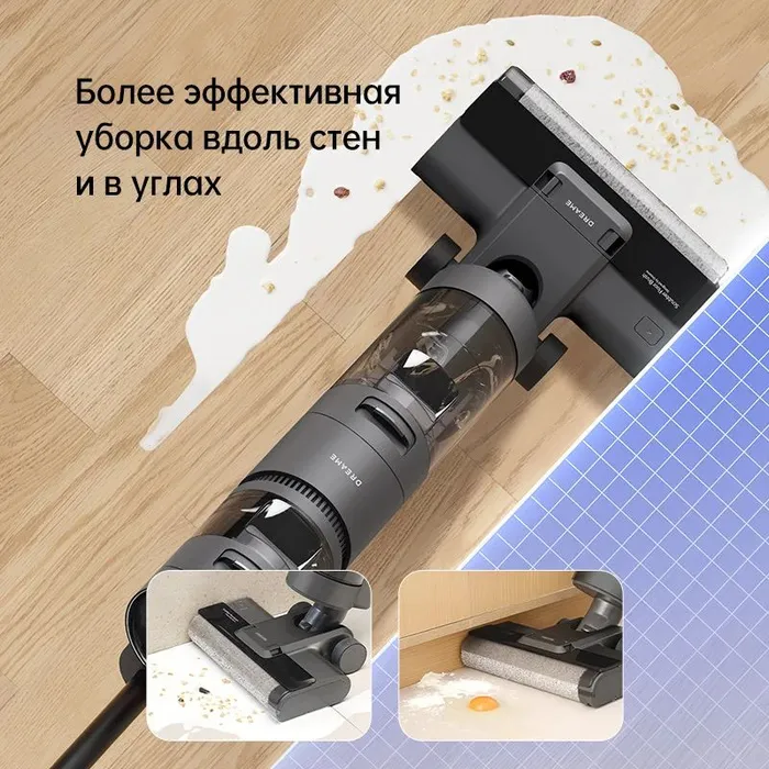 Dreame H11 Core — Беспроводной моющий пылесос Dreame H11 Core предназначен для сухой и влажной уборки помещений, он обладает сбалансированными характеристиками по соотношению цены/качество. Мощность всасывания составляет 6000 Па, благодаря чему пылесос легко удаляет грязь и мусор, позволяя навести чистоту в доме. Для влажной уборки предусмотрены два резервуара: емкостью 900 мл - для чистой воды и 500 мл - для грязной воды. Непрерывное распыление воды позволяет поддерживать чистоту роликовой щетки во время уборки. Основная щетка имеет продуманную конструкцию, которая позволяет выполнять уборку вдоль стен и плинтусов вплотную в пределах 6 мм. Роликовая щетка вращается со скоростью 540 оборотов в минуту и справляется даже со стойкими загрязнениями, а кроме того она же обеспечивает высокую тяговую мощность для движения вперед без лишних усилий.