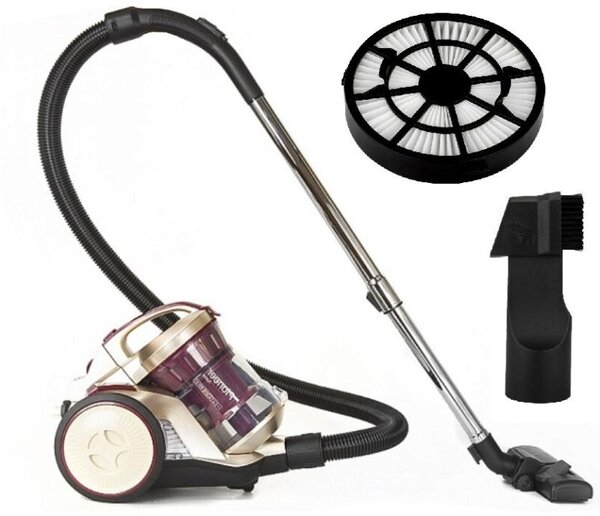 Pioneer VC325C — Циклонный пылесос Pioneer оборудован удобной телескопической металлической трубкой, на ручке которого имеется регулировка воздушного потока и простым в эксплуатации моющимся фильтром HEPA12, который требует чистки 2 р. в год. Механический клапан, расположенный на ручке пылесоса, служит для регулировки воздушного потока, Для деликатных материалов рекомендуется использовать минимальную силу всасывания, для этого нужно полностью открыть клапан, при закрытом чистятся плиточные, деревянные и другие жесткие покрытия. Силу всасывания можно менять в процессе уборки. Мощность всасывания пылесоса 380 Вт, максимальная 2000 Вт. В комплекте 2 насадки, универсальная насадка-щетка и насадка для труднодоступных мест. Универсальная насадка-щетка может использоваться как для уборки пола, так и для уборки ковров, для смены режимов достаточно переключить рычаг в необходимое положение. Узкая насадка пригодится для уборки узких мест, мягкой мебели и штор. Пылесос оборудован автоматической смоткой шнура, длина которого составляет 4,5 м, благодаря такой длине есть возможность провести уборку не в одной комнате.