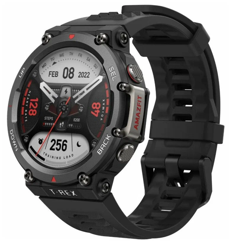 Amazfit T-Rex 2 — часы, изготовленные из полимерного сплава и обладающие небывалой прочностью. Девайс успешно преодолел сразу 15 испытаний военного уровня и получил сертификацию MIL-STD 810G, подтверждающую, что часы готовы справиться с абсолютно любыми препятствиями, возникающими у них на пути. Уникальной особенностью Amazfit T-Rex 2 является возможность создания собственных шаблонов тренировок, а глубина конфигурации включает даже настройку этапов «Разминка», «Тренировка», «Отдых», «Восстановление» и «Заминка». Шаблоны доступны для 11 видов активности, среди которых плавание в бассейне, силовые тренировки, фитнес, бег, езда на велосипеде и многие другие. Круглосуточное наблюдение за ЧСС, насыщением крови кислородом и уровнем стресса, мониторинг сна и дыхания во сне, дыхательные упражнения, менструальные циклы, , уведомления об аномальном пульсе и даже контроль частоты дыхания – всё это доступно в Amazfit T-Rex 2.