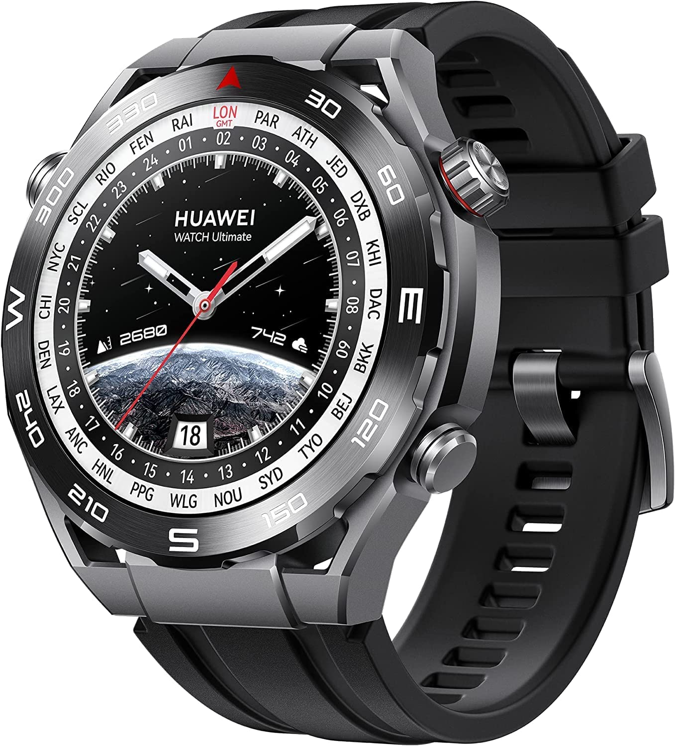 HUAWEI WATCH Ultimate — стильный и функциональный помощник. Они поддерживают измерение ЭКГ, уровня кислорода в крови, количества калорий. В часах установлен сенсорный дисплей диагональю 1.5 дюйма с технологией AMOLED, который обеспечивает детализированное изображение. Эргономичный ремешок из эластомера гарантирует комфортное ношение часов.