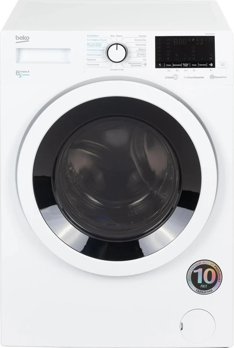 Одно из главных преимуществ представленной машины заключается в возможности дистанционного управления со смартфона. Вы можете начать стирку, находясь на работе или на даче, если заранее сложили белье в барабан! Нагревательный элемент Hi-Tech защищен от накипи и коррозии. Это положительно сказывается на сроке службы стирально-сушильной машины Beko WDW85636B3.