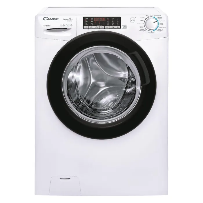 Candy Smart Pro Inverter CSO4 276TWM-07 — узкая стиральная машина оснащена инверторным мотором. Уровень шума во время стирки — не более 51 дБ, при отжиме он не превышает 74 дБ. В барабан 48 л можно загрузить до 7 кг белья. Электронная система управления открывает доступ к выбору программ, предусмотрена функция «Отложенный старт». Актуальная информация выводится на цифровой дисплей. Безопасность обеспечивается блокировкой от детей. Энергоэффективность соответствует классу A+++. Потребление электричества за цикл — 0,91 кВт*ч, расход воды — 52 л. Размеры — 85х40х60 см.