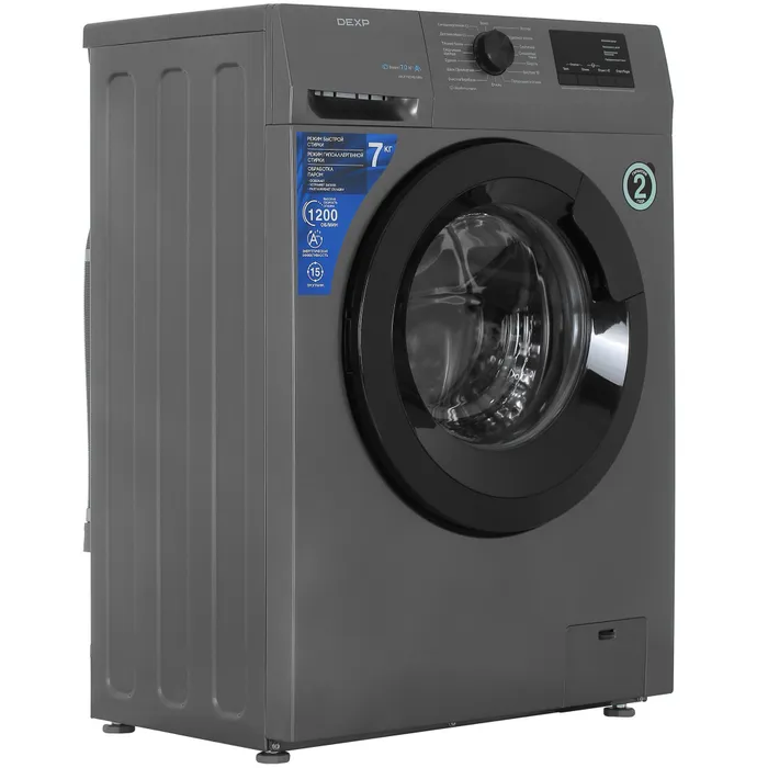 Стиральная машина DEXP WM-F712DHE/GBSu предлагает возможность выбора температуры для бережного ухода за вещами из деликатных материалов. Обработка паром осуществляет устранение запахов, стойких пятен, посторонних микроорганизмов. Удалением остатков моющих средств займется гипоаллергенная программа. Доступ к параметрам производится через поворотный переключатель и кнопки. Индикаторы и дисплей проинформируют о заданном функционале.