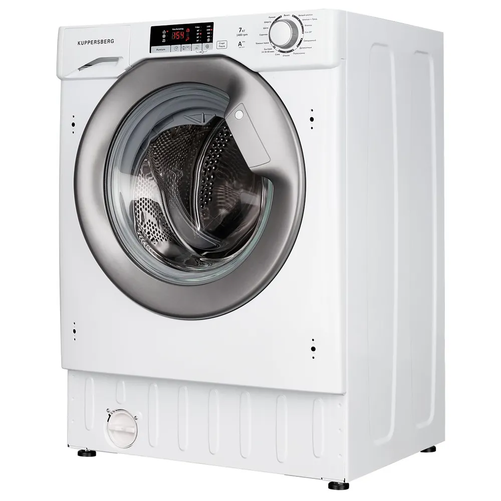 KUPPERSBERG WM 1477 — встраиваемая стиральная машина оснащена большим и удобным LED-дисплеем. Барабан обладает объемом 62 л. Максимальная загрузка составляет 7 кг. За один цикл расходуется 39 л воды. Есть 14 режимов стирки, включая программы для деликатных тканей, пуховиков, нижнего белья. Максимальная скорость отжима — 1400 об/мин.