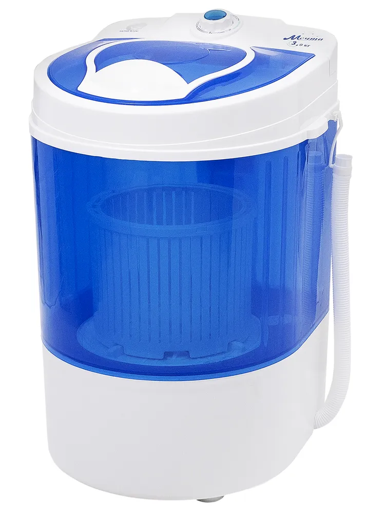 Максимальная загрузка 3 кг для стирки и 1.5 кг для отжима — мало для семьи, подходит лишь для одного-двух человек или дачи.