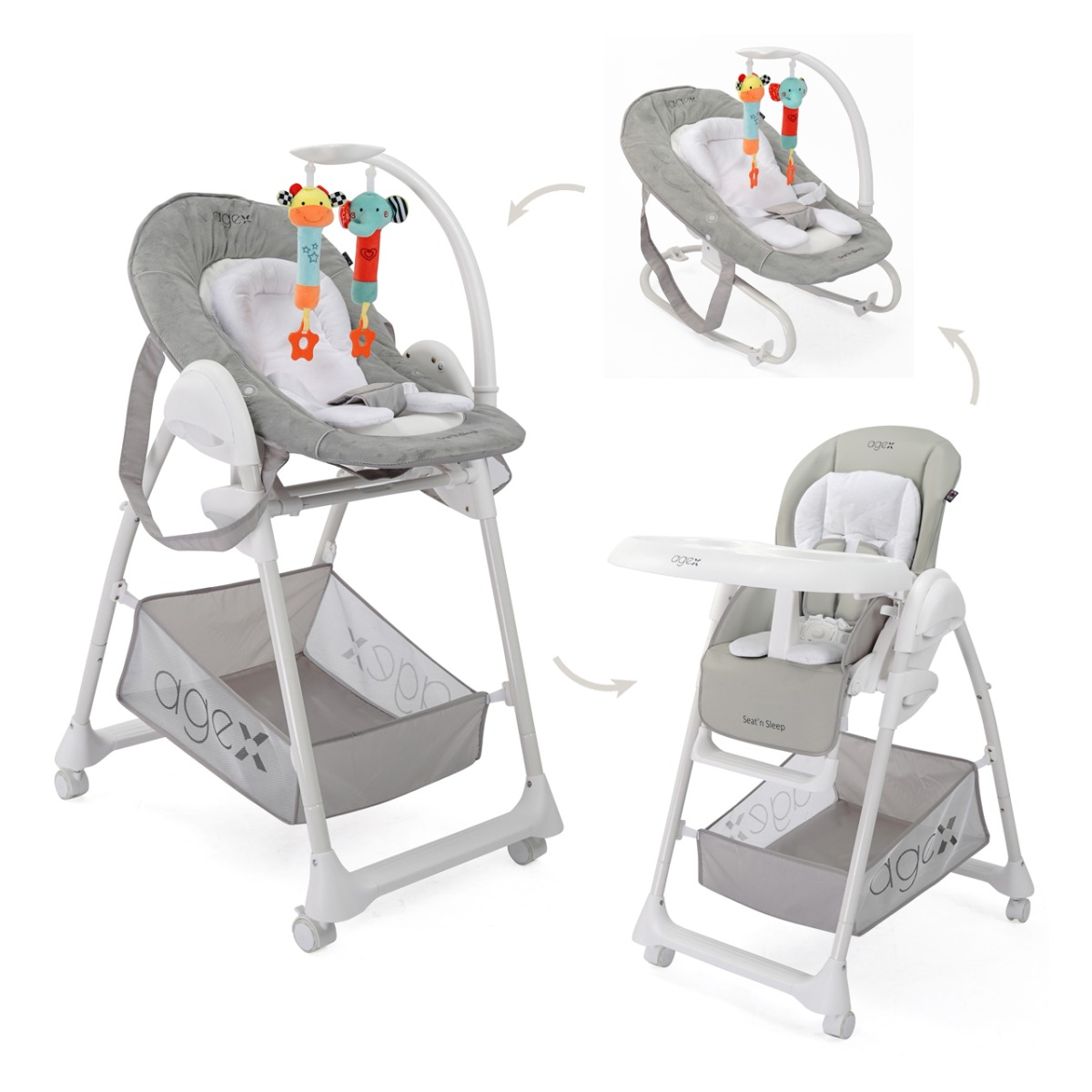 Agex Seat’n Sleep — это удобный и стильный помощник, который растет вместе с вашим малышом — от первых дней до освоения прикорма. Благодаря регулируемой высоте и наклону спинки, а также съемному столику, он легко подстраивается под любые потребности и превращается в уютное место для сна и игр. Моющийся текстильный чехол и корзина для хранения сделают уход за этим стульчиком легким и приятным.