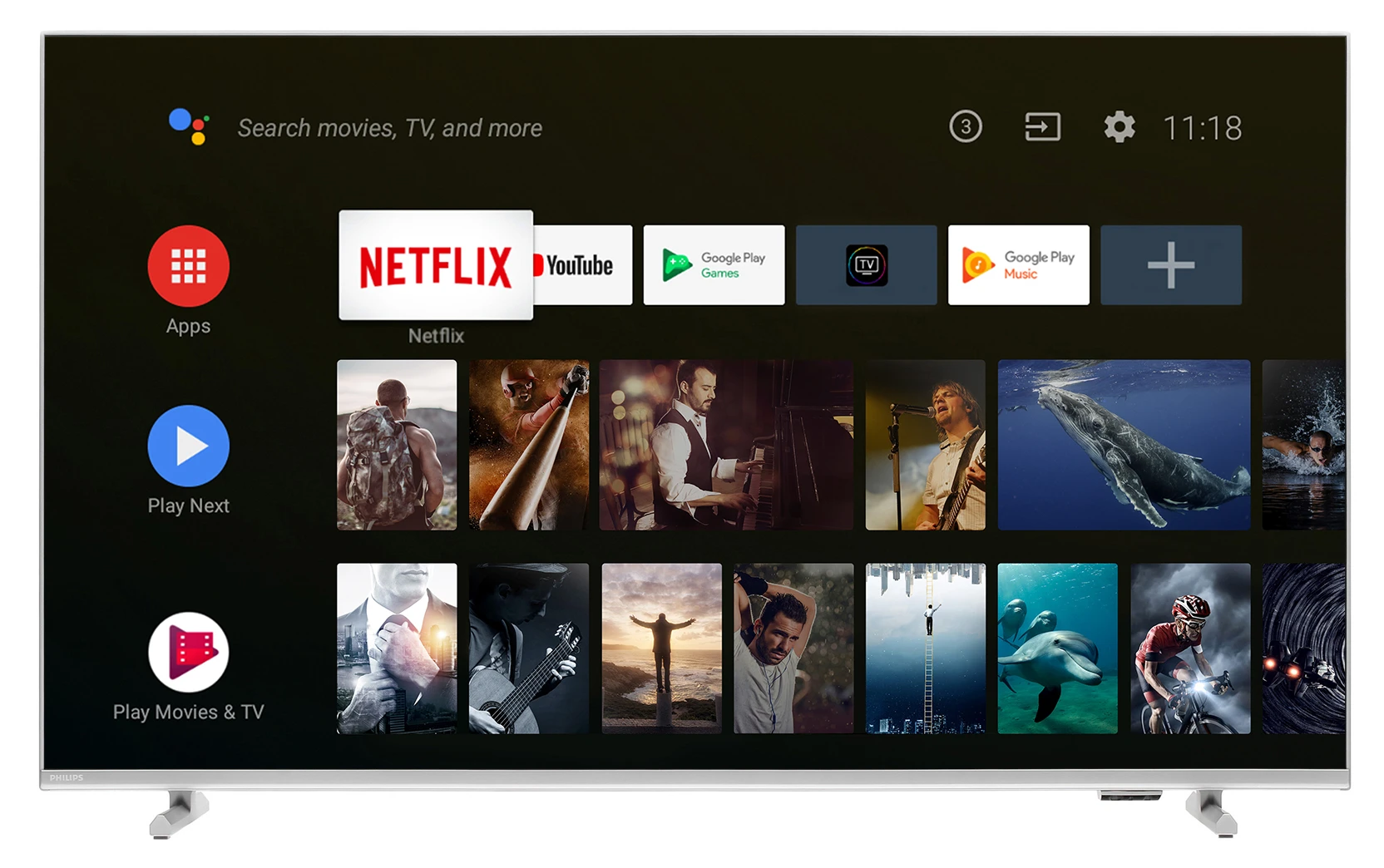Наличие Android TV означает доступ к широкому спектру приложений, сервисов и голосовому управлению.